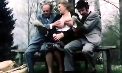 Classic porno in the forest with two ladies