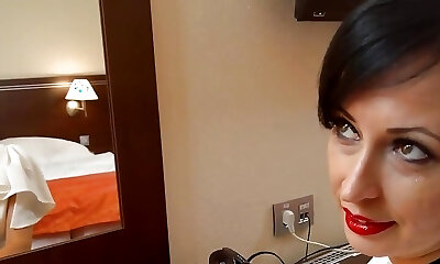 Vintage looking brunette maid conforms her landlord with blowjob