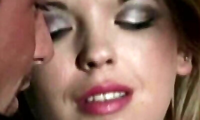 Sweet and big-boobed old school blondie eating dick of a big guy