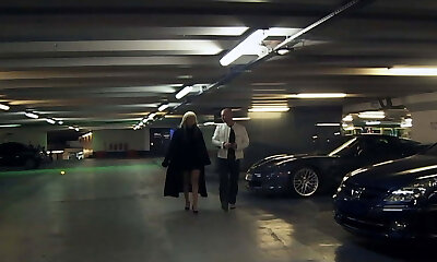 Mind-blowing classic buxom blondie in the car gives head to her man