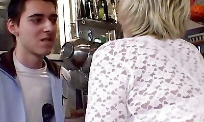 जर्मन पुराने दादी एरिका 73 युवा लड़के द्वारा रसोई घर में बकवास करने के साथ छेड़खानी