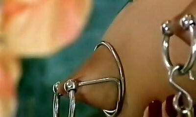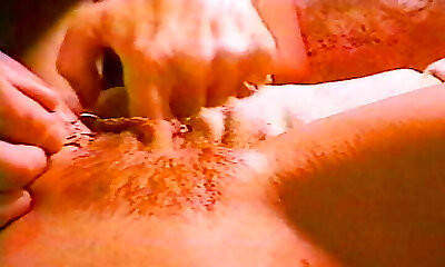 Glorious looking German lady in stockings gets her juicy muff pierced