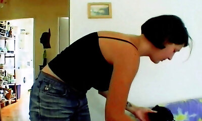 Brown-haired 22 Jahre Piercings hat Ihre erste Zeit vor der Kamera und zieht es durch